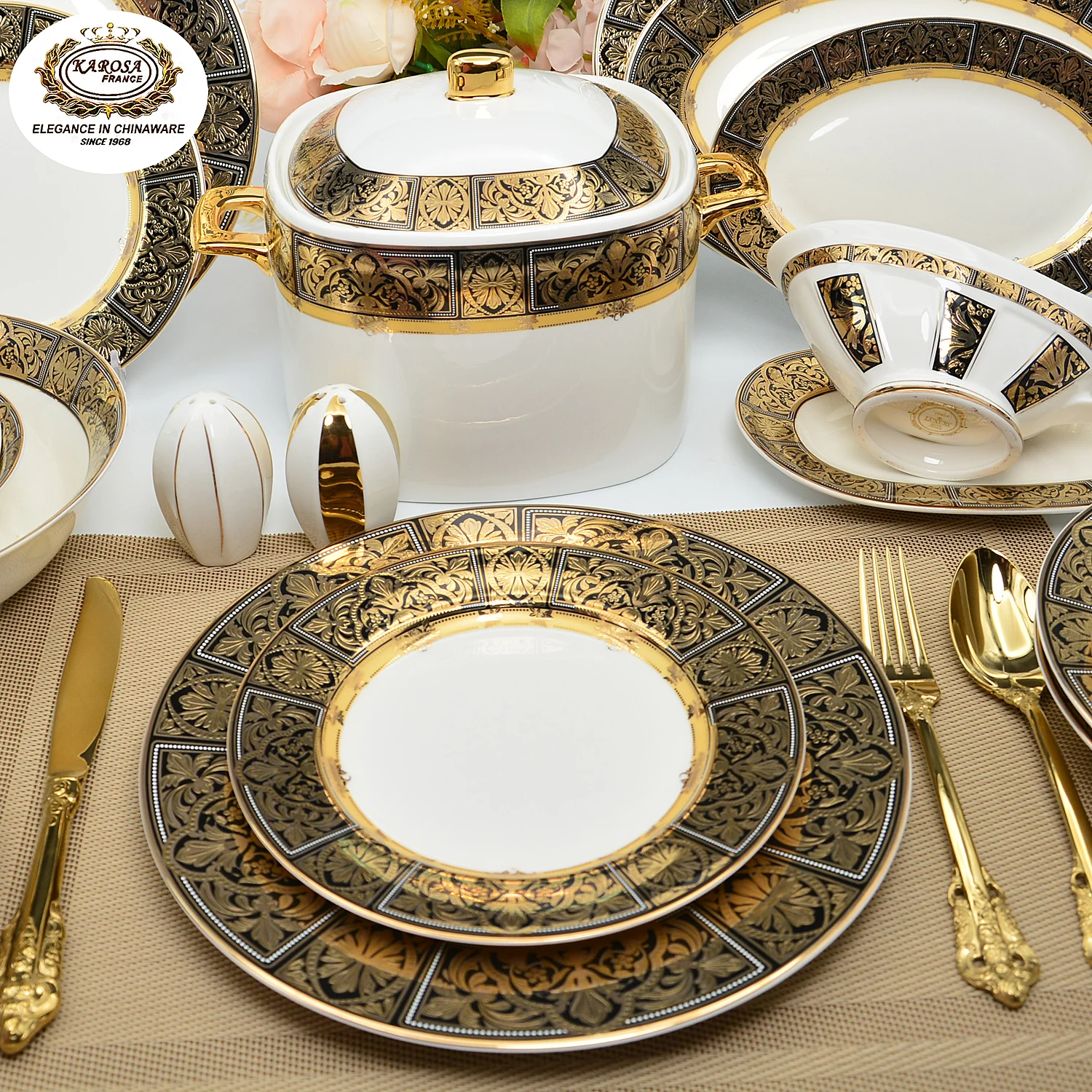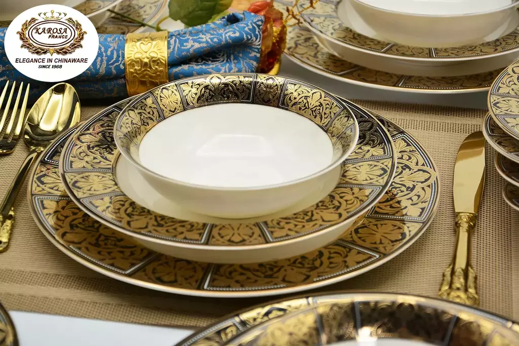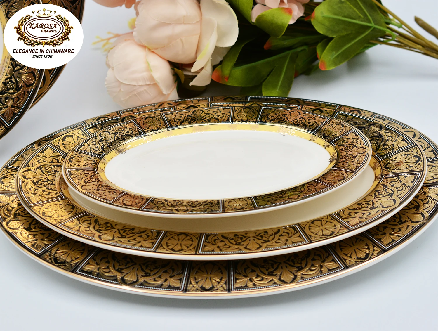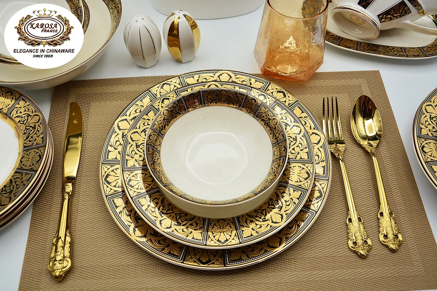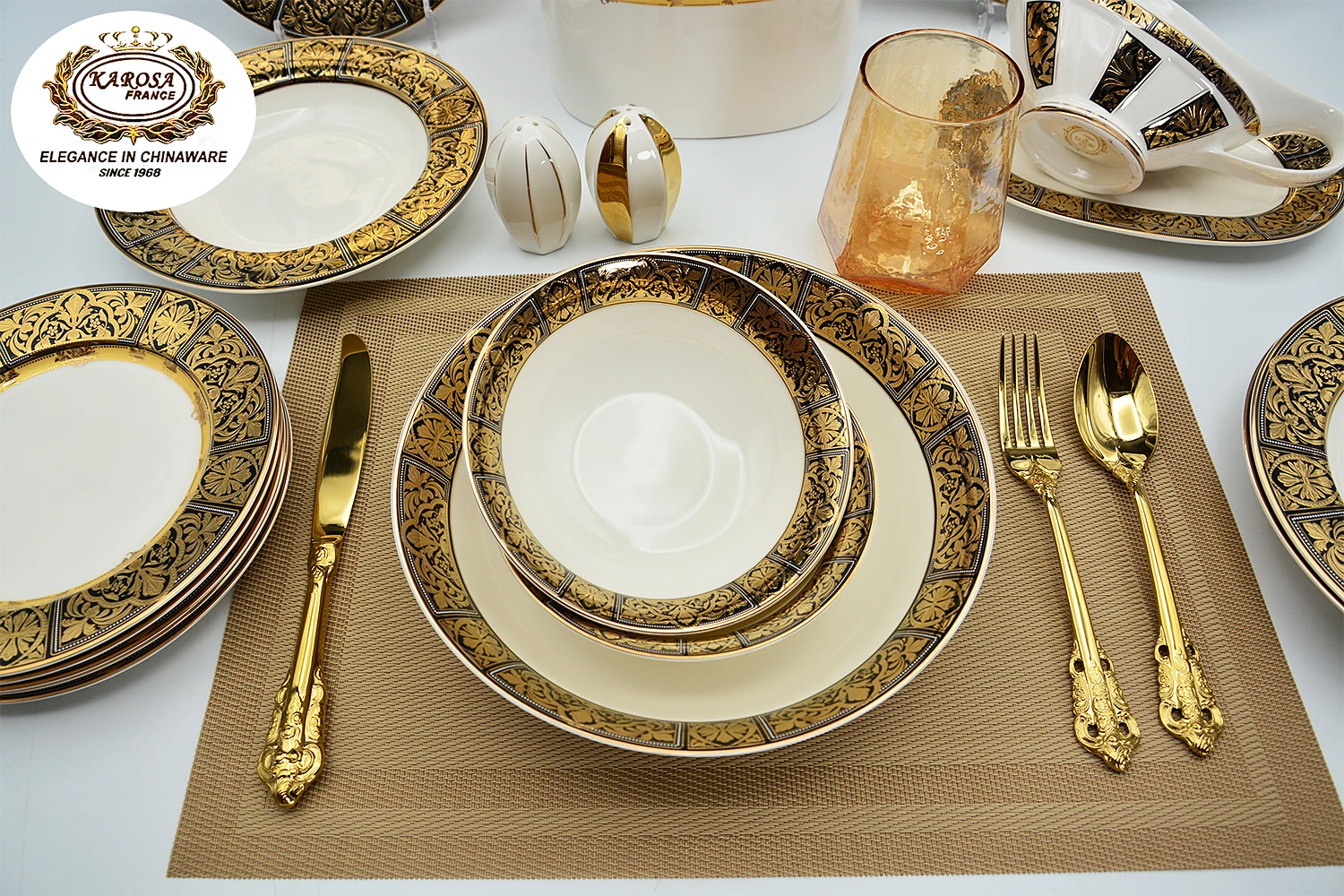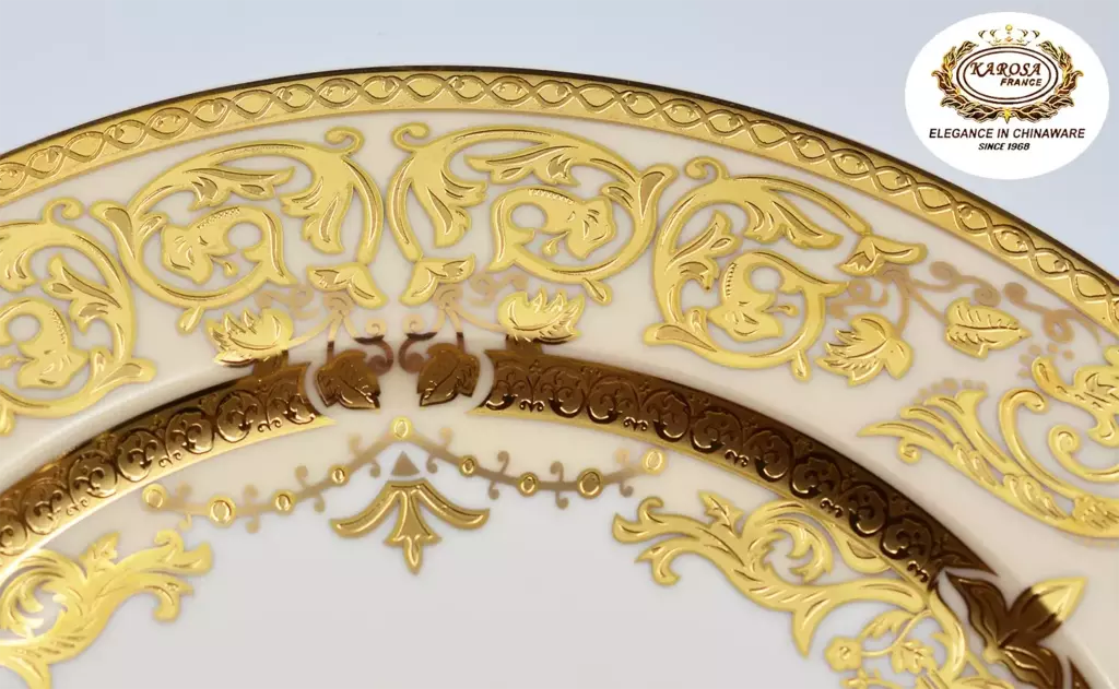 Marca KAROSAJuego de vajilla de oro en relieve de 24 quilates.Imágenes detalladas