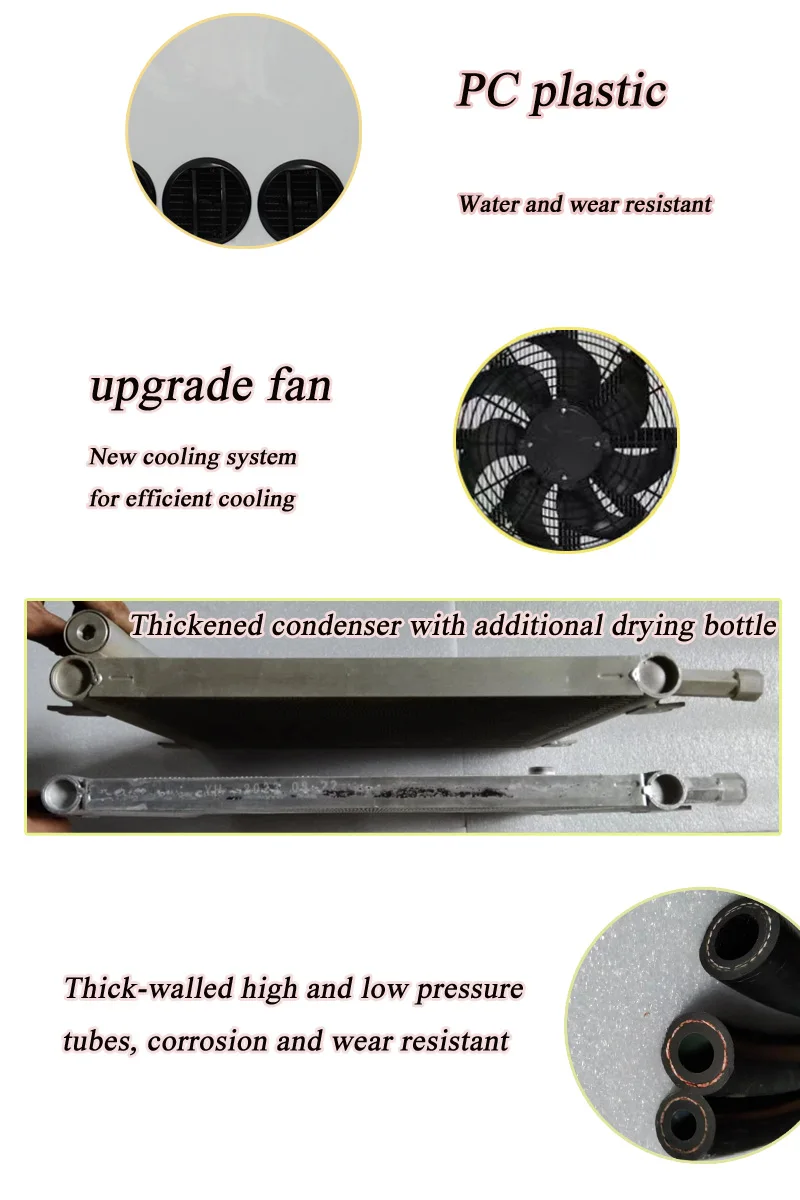 AplicaciónEsta unidad se utiliza principalmente para enfriar la cabina del camión durante los períodos de descanso nocturno del conductor y durante las operaciones de carga y descarga.Amplia gama de aplicaciones: equipos de construcción, equipos industriales, equipos agrícolas, camiones ligeros y pesados, grúas, montacargas, talleres móviles y cualquier otro equipo con un espacio de enfriamiento de 1-6cbms.