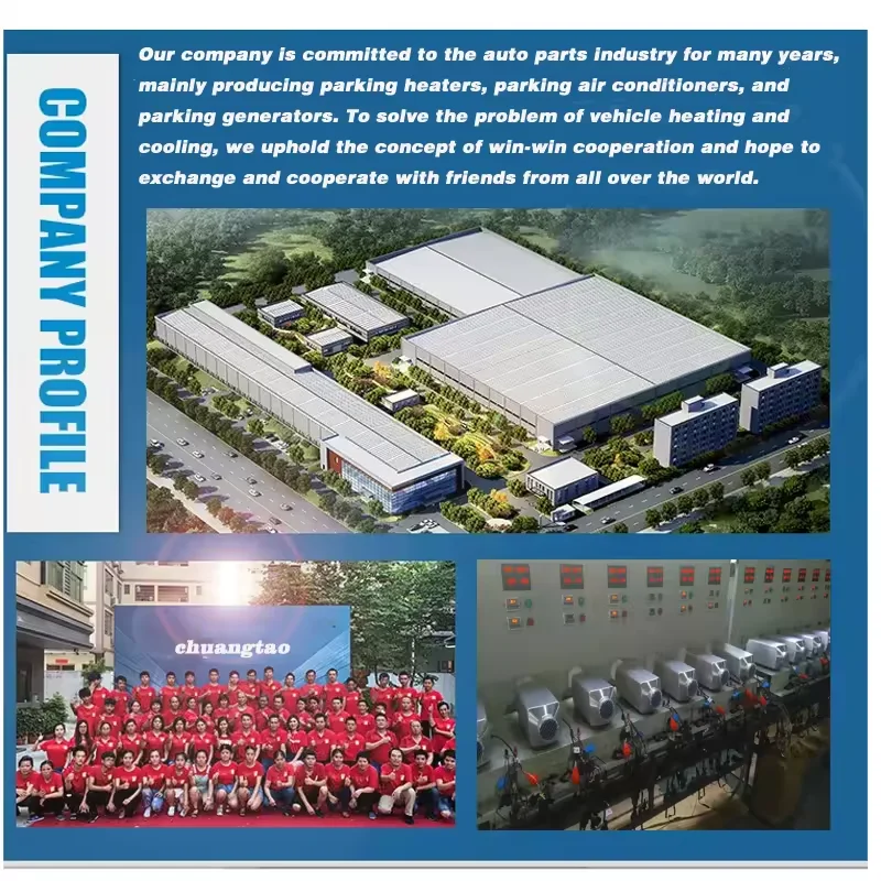 Introducción de la empresaNuestra empresa está comprometida con la industria de autopartes durante muchos años, produciendo principalmente calentadores de estacionamiento, aires acondicionados de estacionamiento y generadores de estacionamiento.Para resolver el problema de la calefacción y refrigeración de vehículos, defendemos el concepto de cooperación y esperanza beneficiosa para todos.