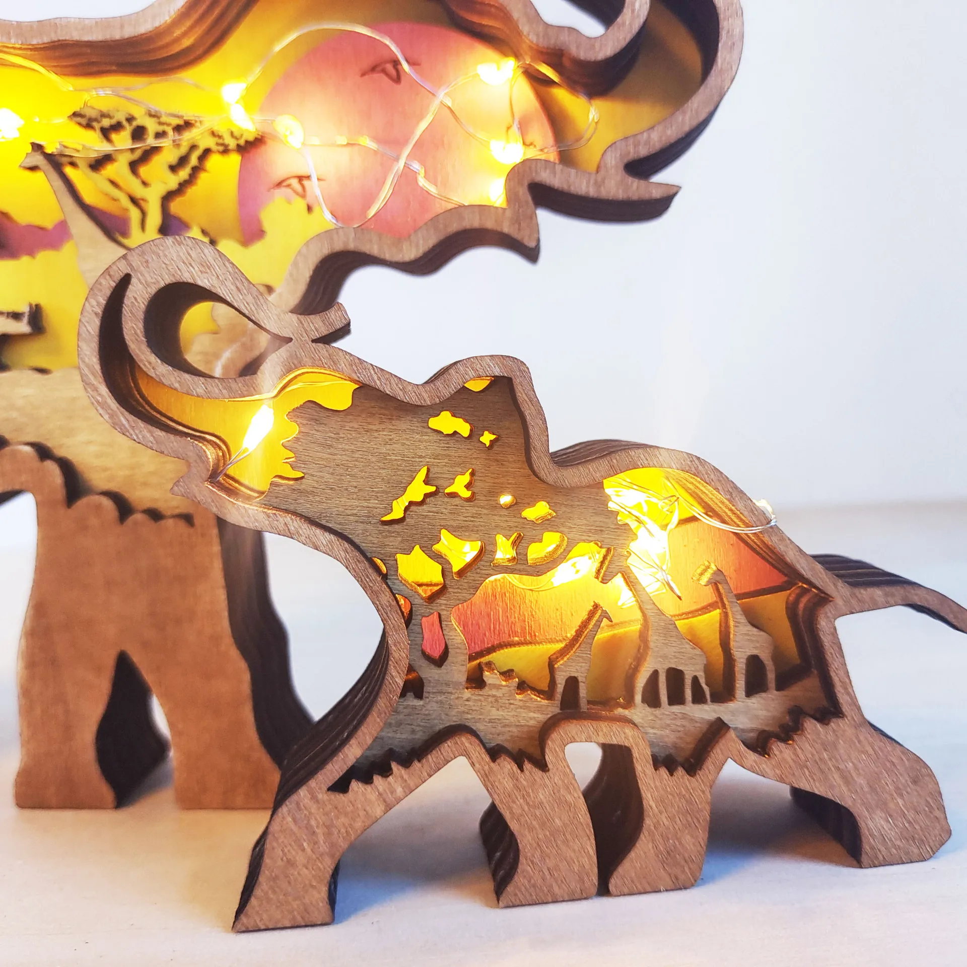 2 figuras de soporte de decoración de madera multifuncionales.no solo una artesanía hueca de madera, sino también una pequeña lámpara de madera que es agradable para decorar la sala de estar de su dormitorio y funciona como luz nocturna.