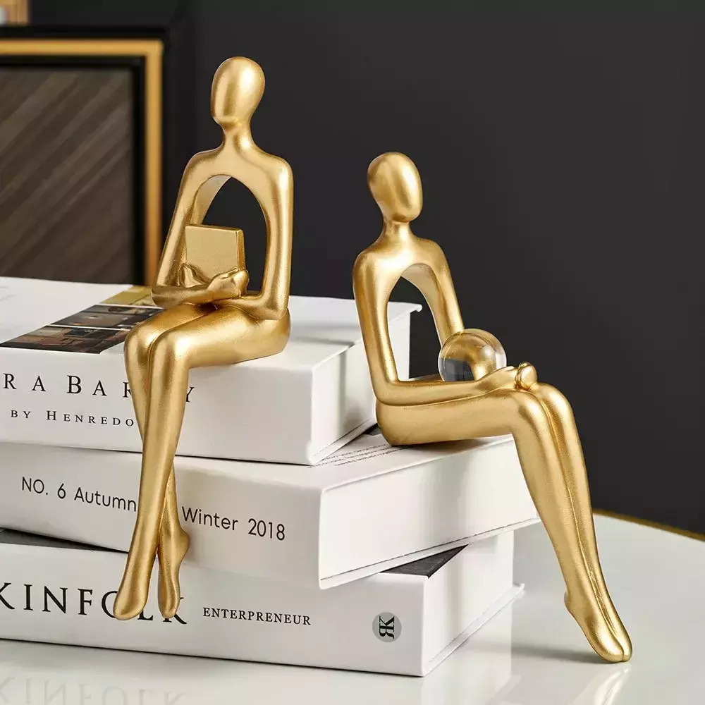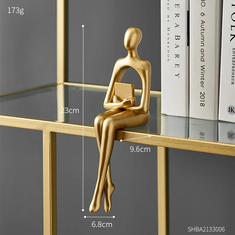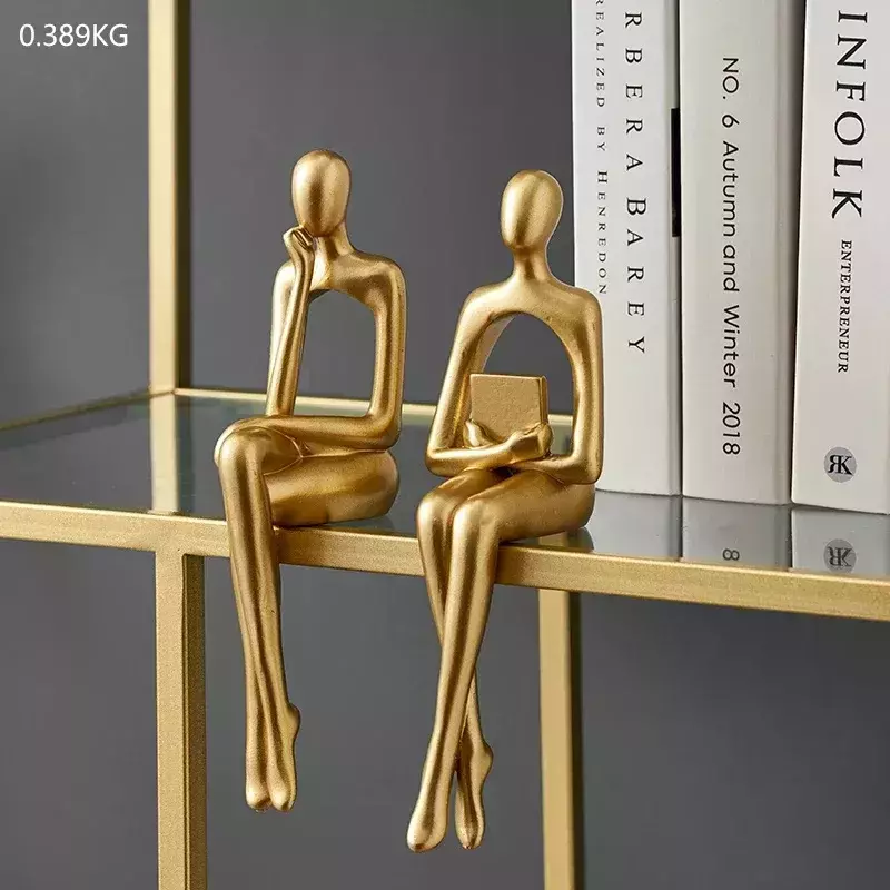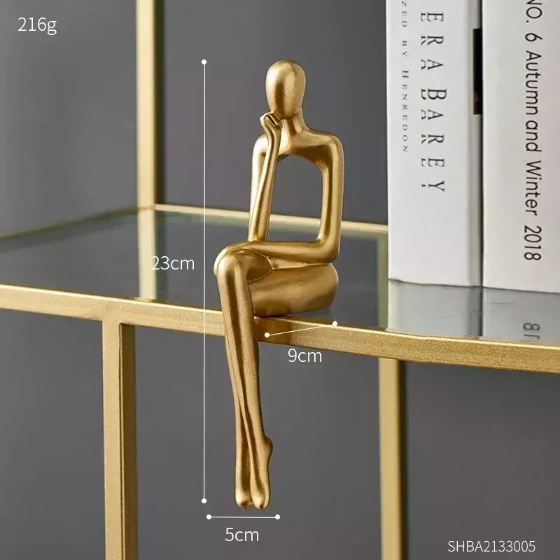 Estatuas de pensador doradas para decoración del hogar, escultura de estantería, decoraciones para sala de estar, figuritas modernas, estante, mesa, decoración de escritorio