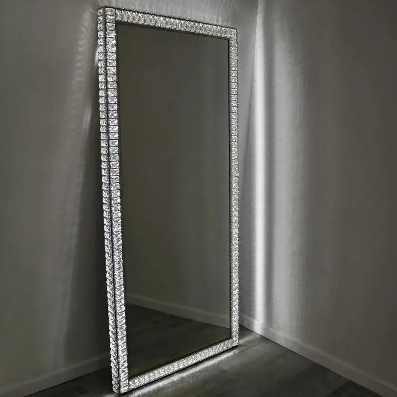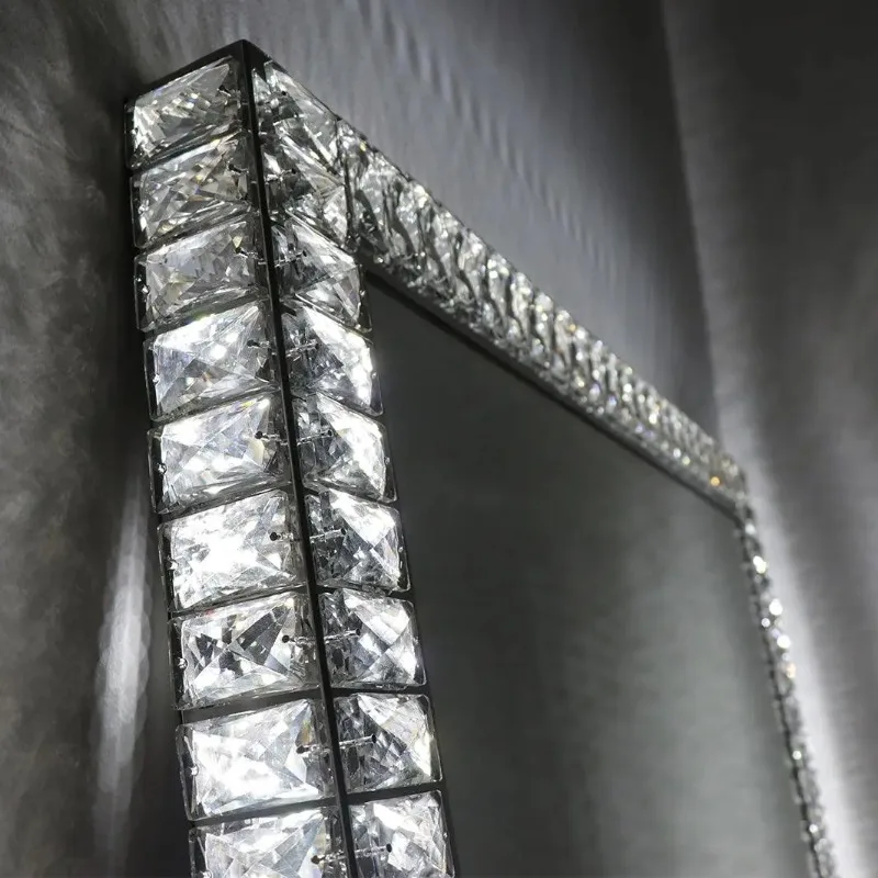 Espejo LED de diamanteEste espejo LED profesional está forrado con cristales brillantes y tres opciones de luz con temperatura de color, creando una sorpresa.