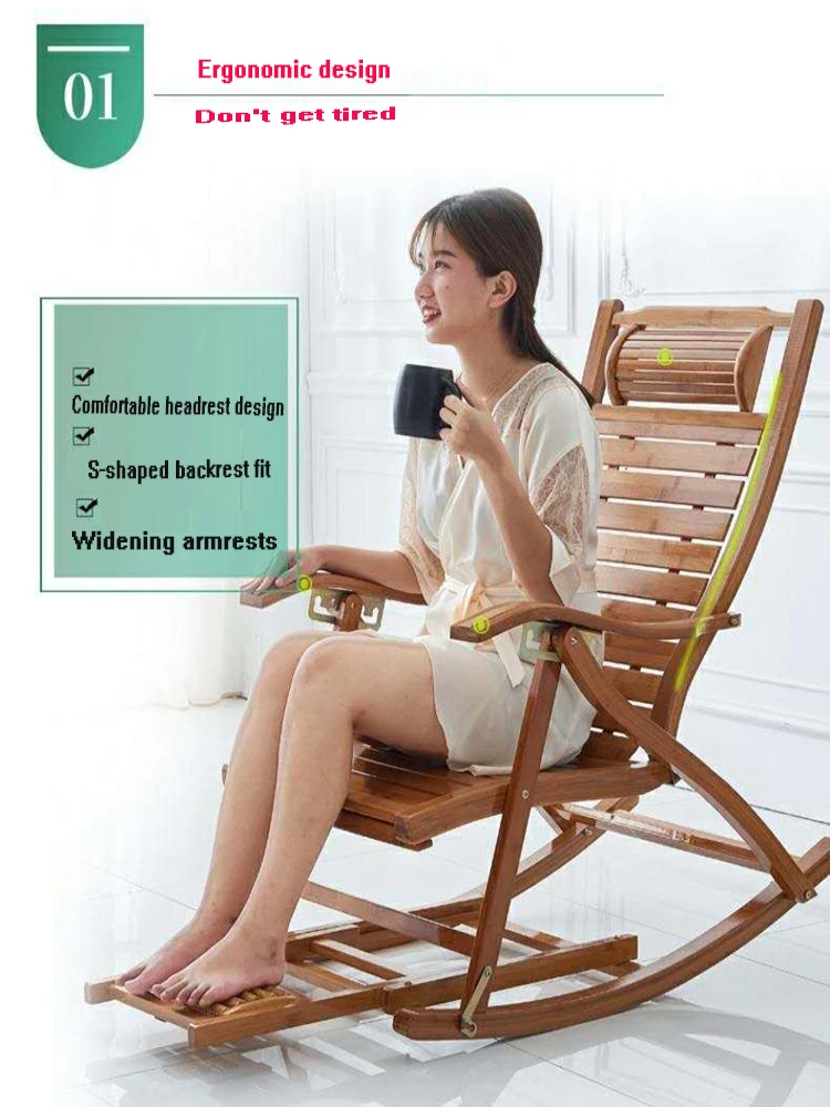 Mecedora reclinable de bambú con respaldo, silla plegable para romper, balcón, ocio perezoso, muebles para el hogar, sillón para ancianos, masaje de pies