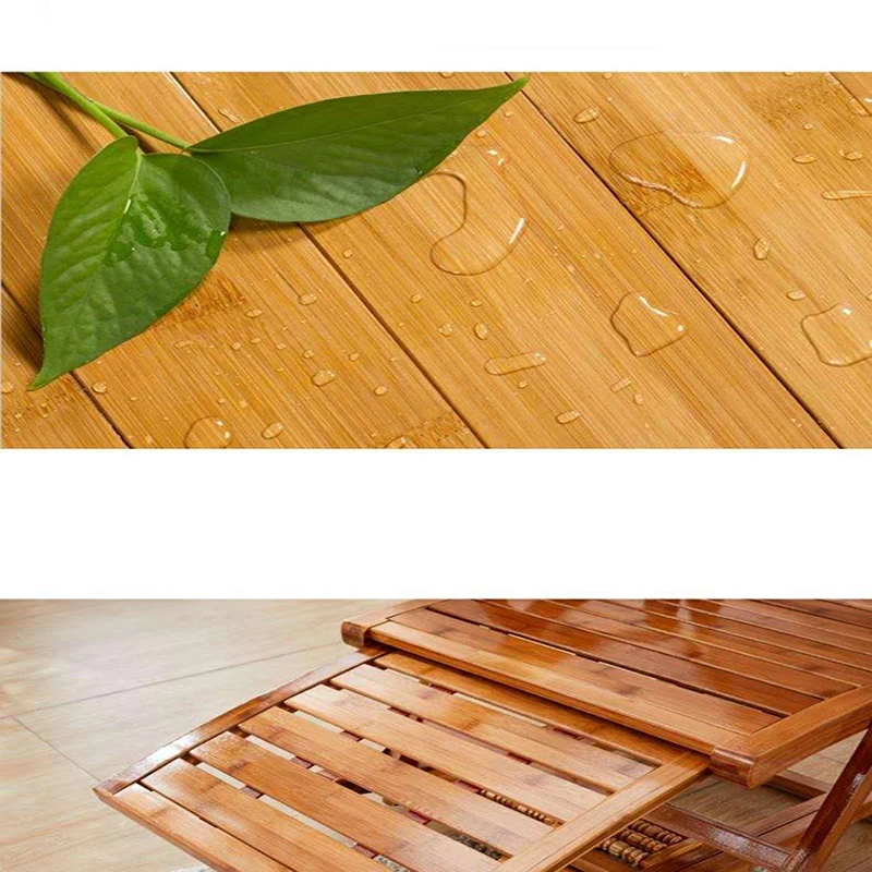 Material de bambú natural de alta calidad, superficie de asiento finamente pulida, plana y lisa, impermeable y fácil de limpiar. Equipado con pedales telescópicos, puede sentarse y rodar.