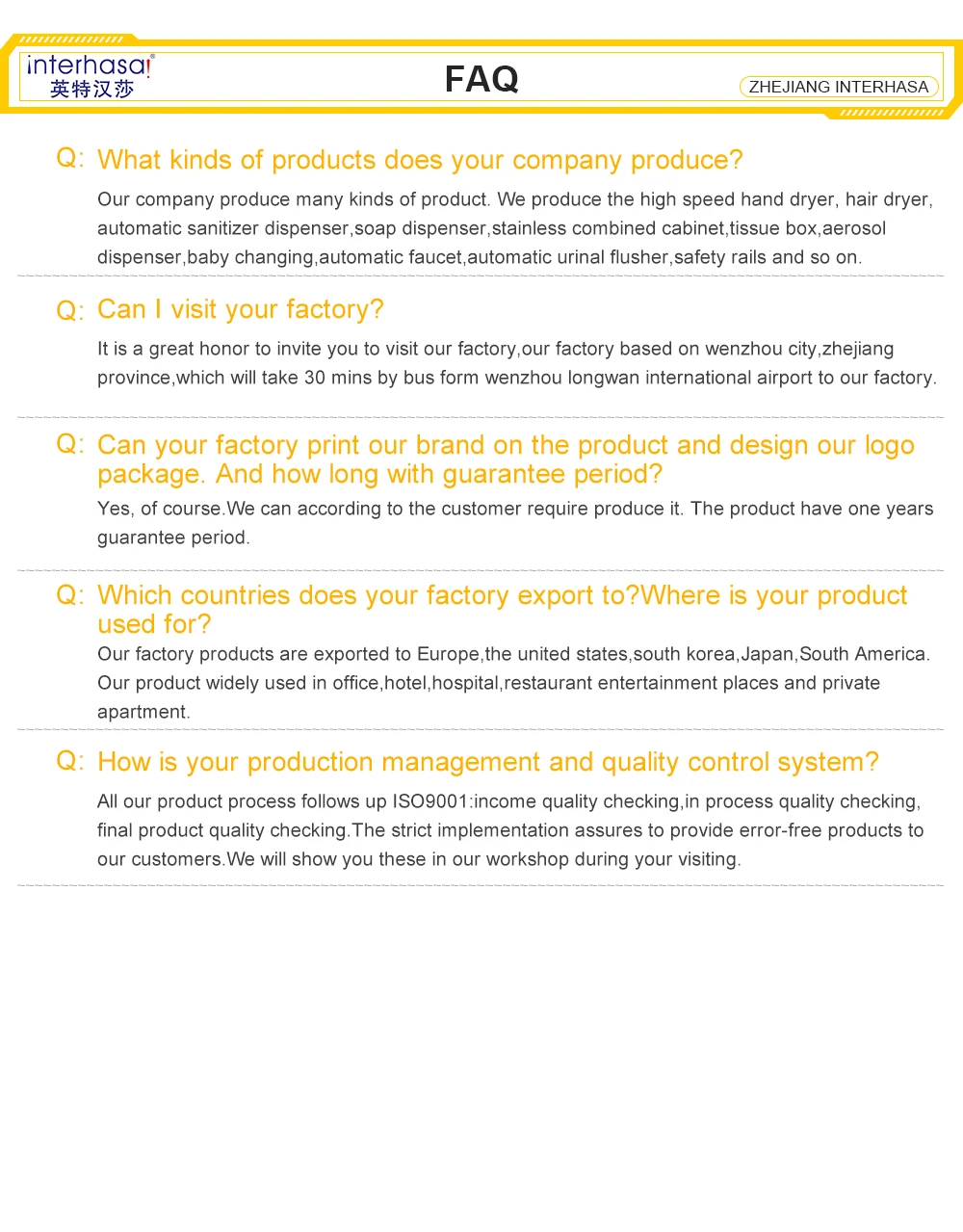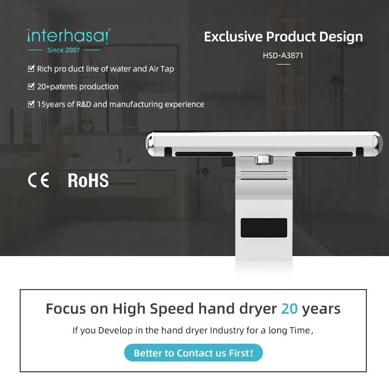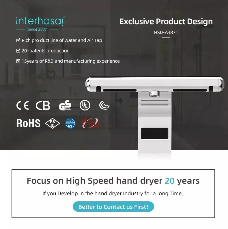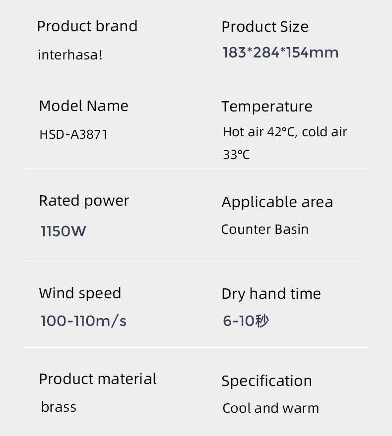 TAPLA y secador de manos Modelo de producto: HSD-A3871Potencia: 1150wVelocidad del viento: 100 m/s