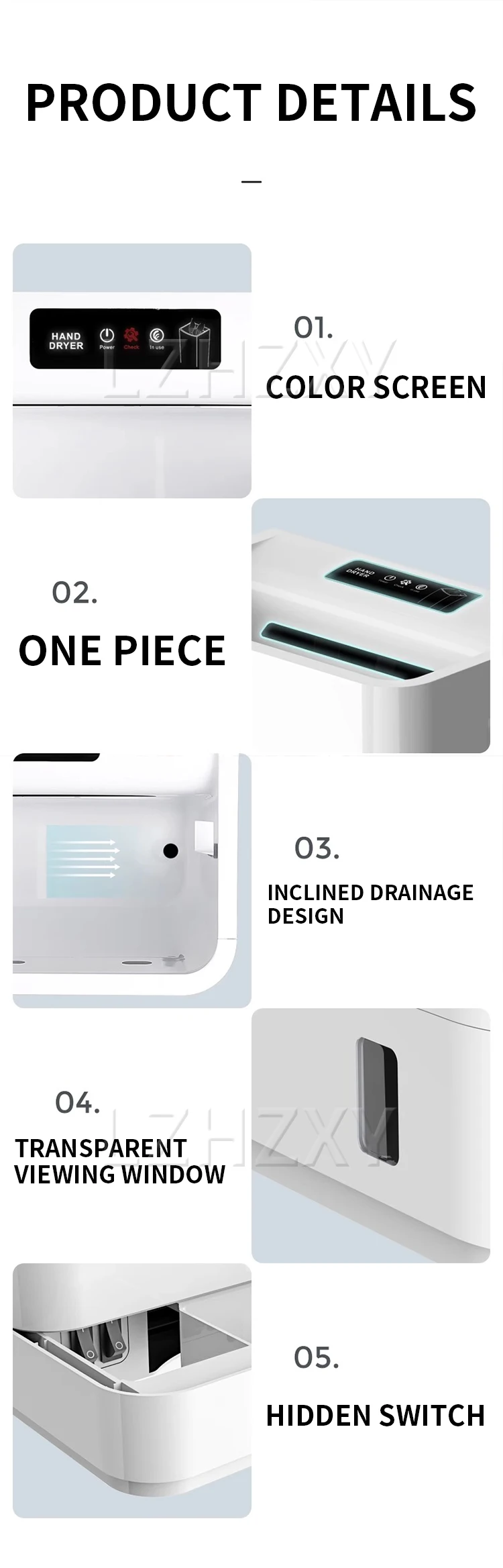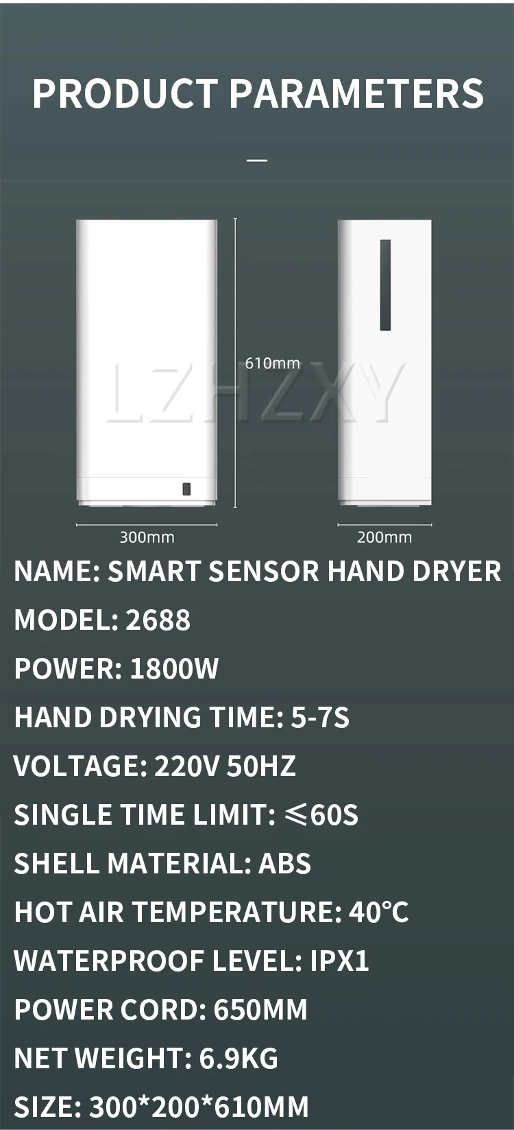 Secadores de manos automáticos con filtro HEPA, velocidad de chorro, viento de 90 m/s para inodoro de baño comercial