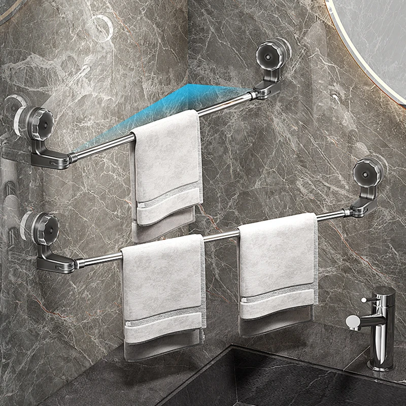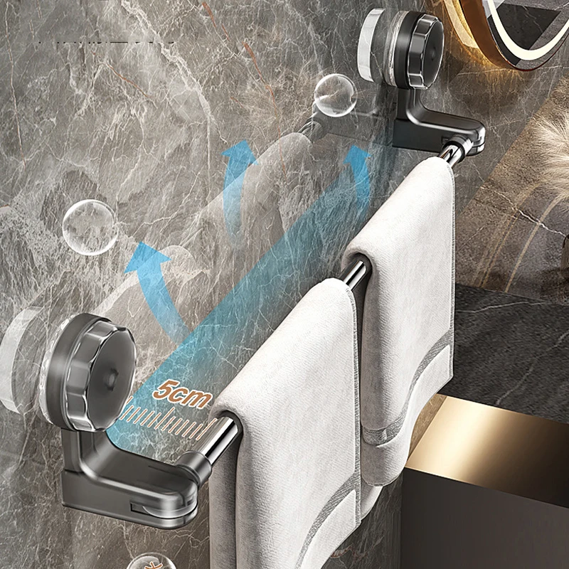 Nuestro toallero con ventosa está diseñado con una longitud ajustable, puede ajustar el ancho del toallero para adaptarse a diferentes tamaños de toallas o restricciones de espacio.Además, gracias al diseño de la ventosa, los usuarios pueden mover fácilmente el toallero a diferentes posiciones, lo que aumenta la flexibilidad de uso.