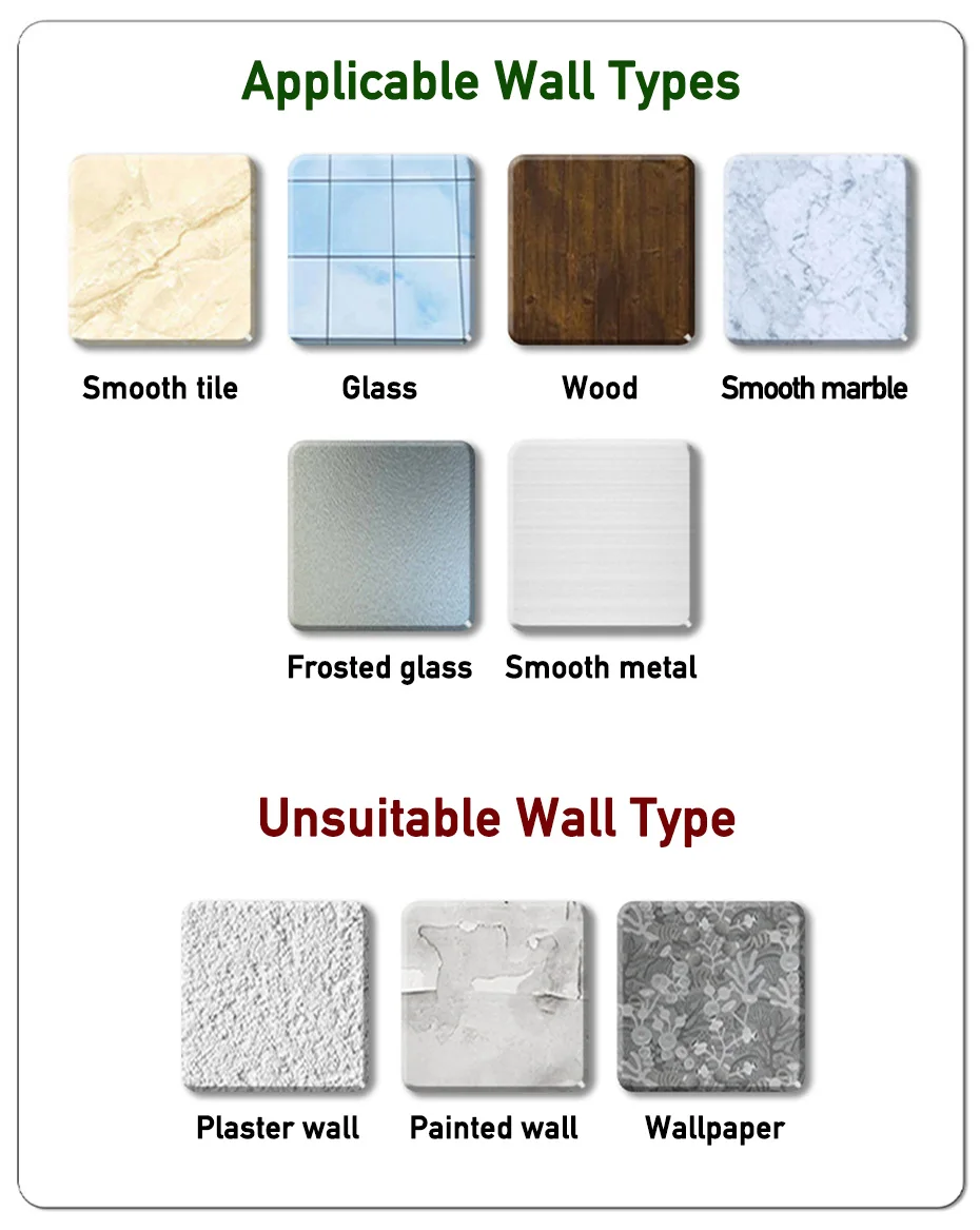 3.Pegue el producto sobre una pared lisa y limpie la pared antes de usarlo; de lo contrario, afectará el efecto de uso.