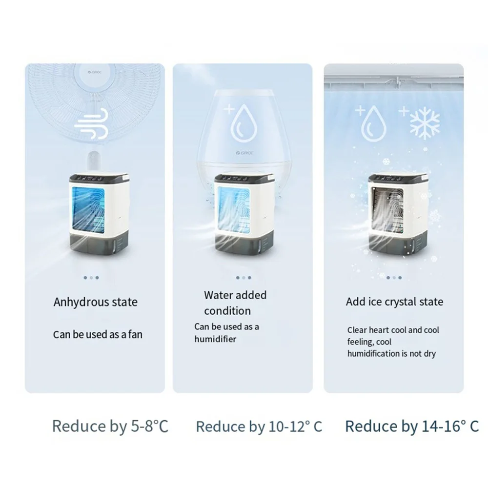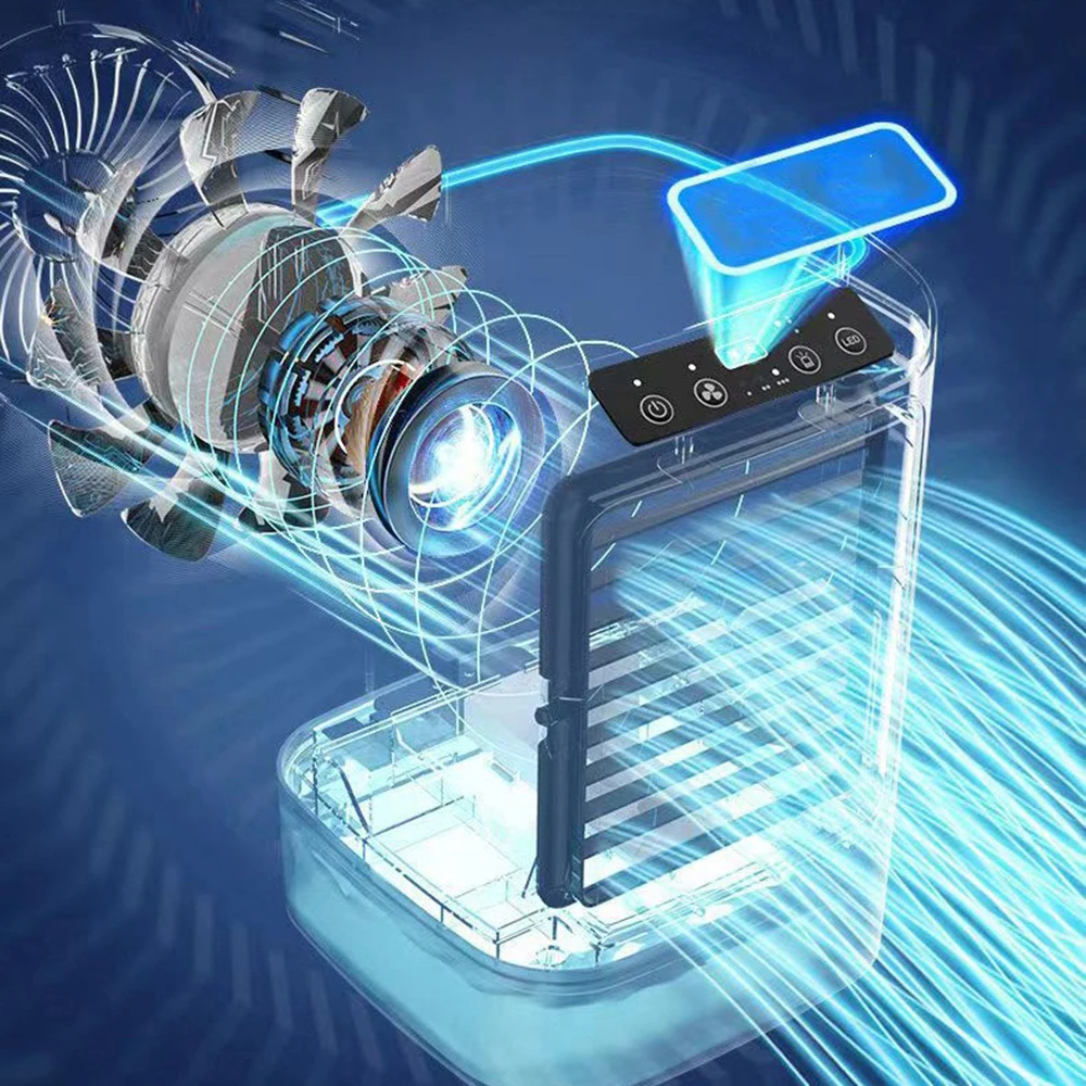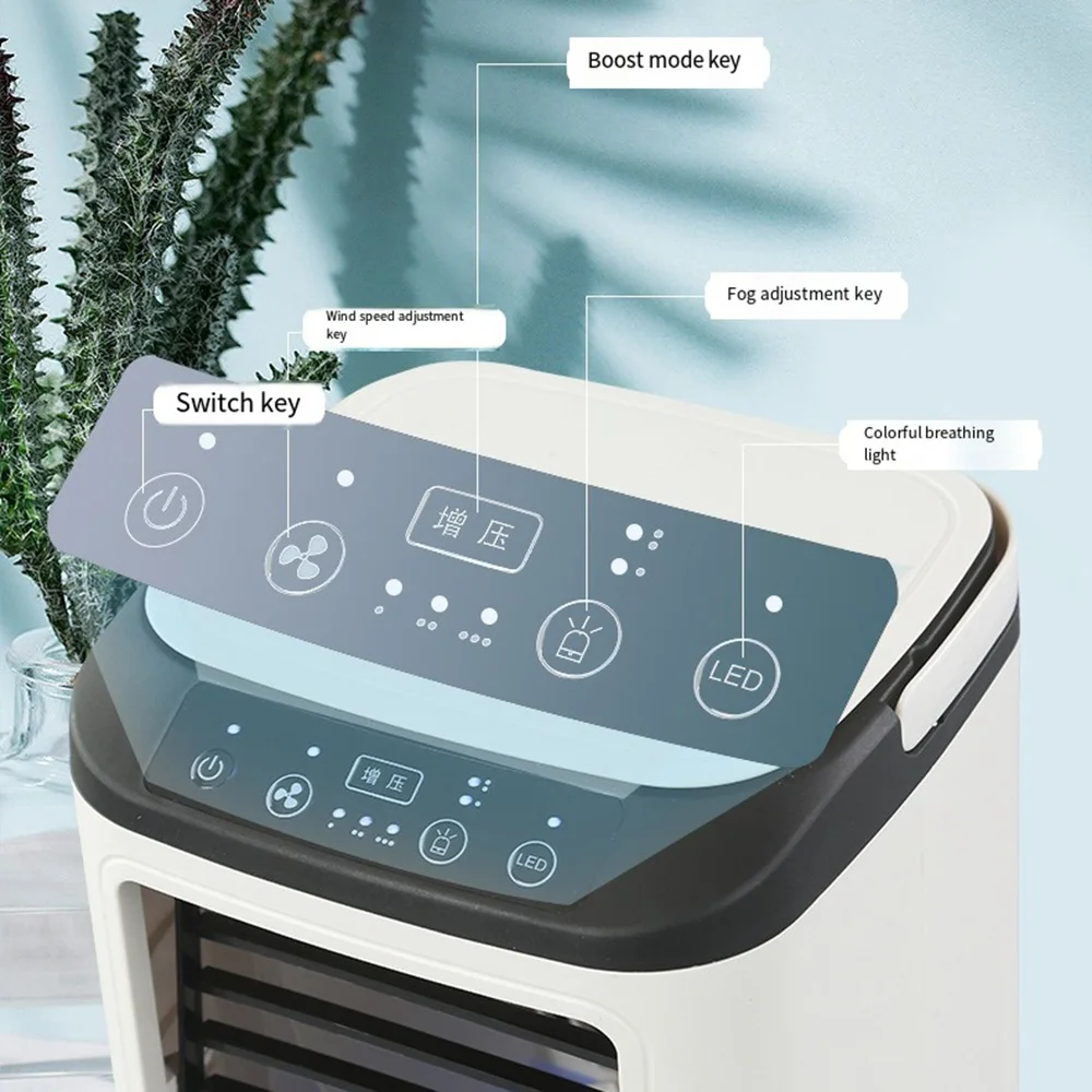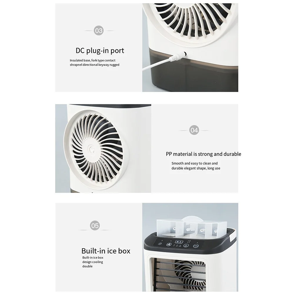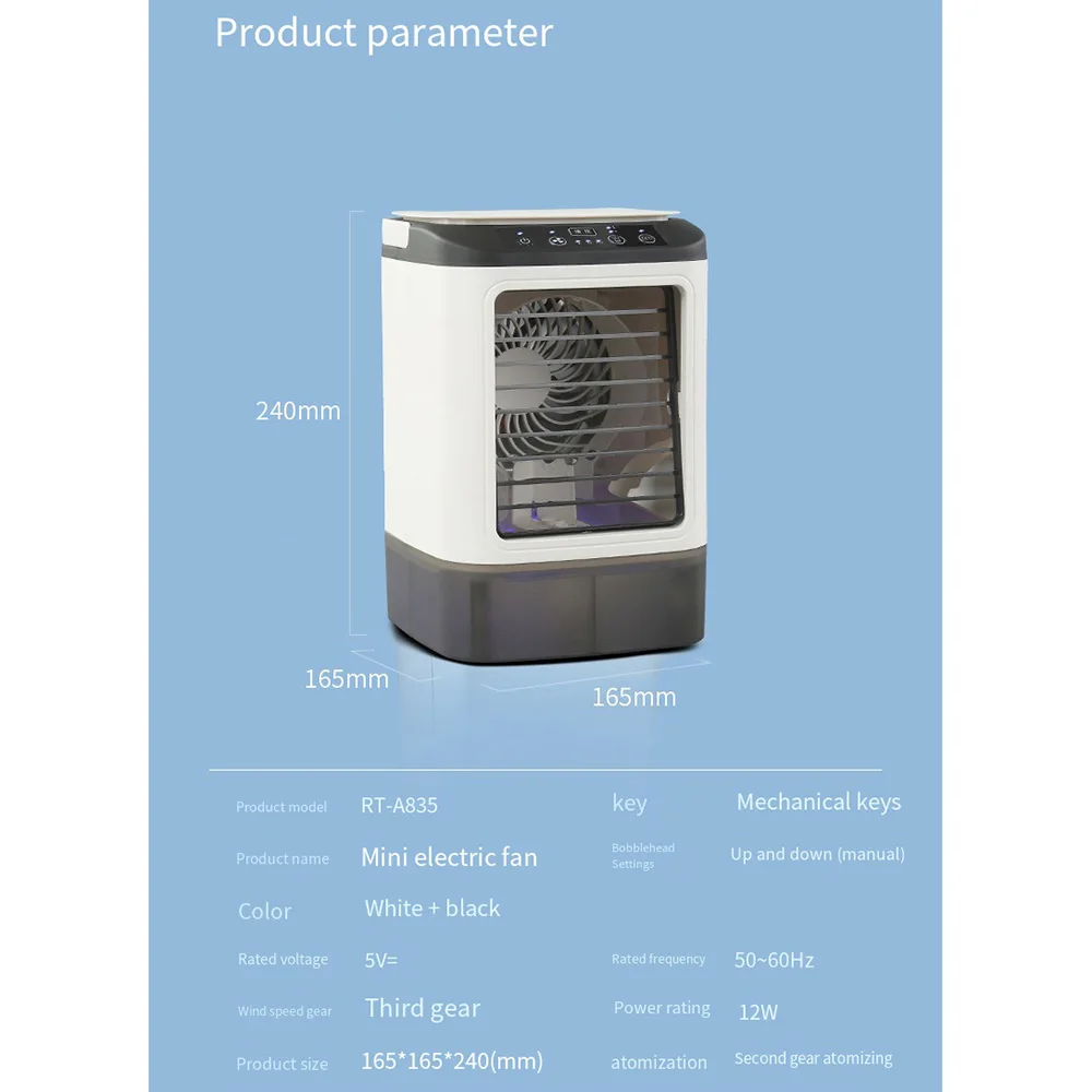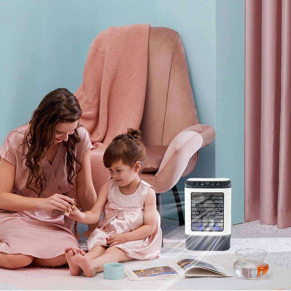 Ventilador de aire acondicionado portátil USB de 3 engranajes para habitación, hogar, humidificador de escritorio, Mini ventilador de refrigeración, lámpara LED nocturna, Enfriador de aire para acampar